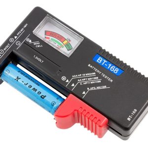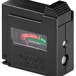Battery tester της Goobay με ένδειξη της κατάστασης της μπαταρίας. Είναι συμβατό με μπαταρίες AAA (Micro), AA (Mignon), C (Baby), D (Mono), 9V Block, N (Lady).