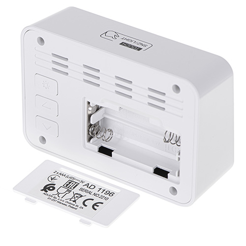 Το ξυπνητήρι AD 1196 είναι μια συσκευή με πολλές χρήσιμες λειτουργίες που μπορείτε να επιλέξετε ανάλογα με τις ανάγκες σας. Πρώτα απ 'όλα, διαθέτει 3 ξεχωριστές ρυθμίσεις ώρας συναγερμού και εμφανίζει: ώρα, ημερομηνία, θερμοκρασία, υγρασία. Ένα μεγάλο πλεονέκτημα είναι η ευανάγνωστη οθόνη με οπίσθιο φωτισμό, από την οποία μπορείτε να διαβάσετε εύκολα την ώρα και τη θερμοκρασία. Το ξυπνητήρι τροφοδοτείται από 2 μπαταρίες AAA. Εμφανίζει: ώρα, ημερομηνία, θερμοκρασία, υγρασία.
