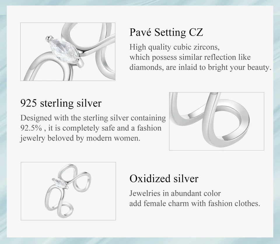 BAMOER δαχτυλίδι SCR1065-E με κυβική ζιρκόνια, ανοιγόμενο, ασήμι 925, ασημί