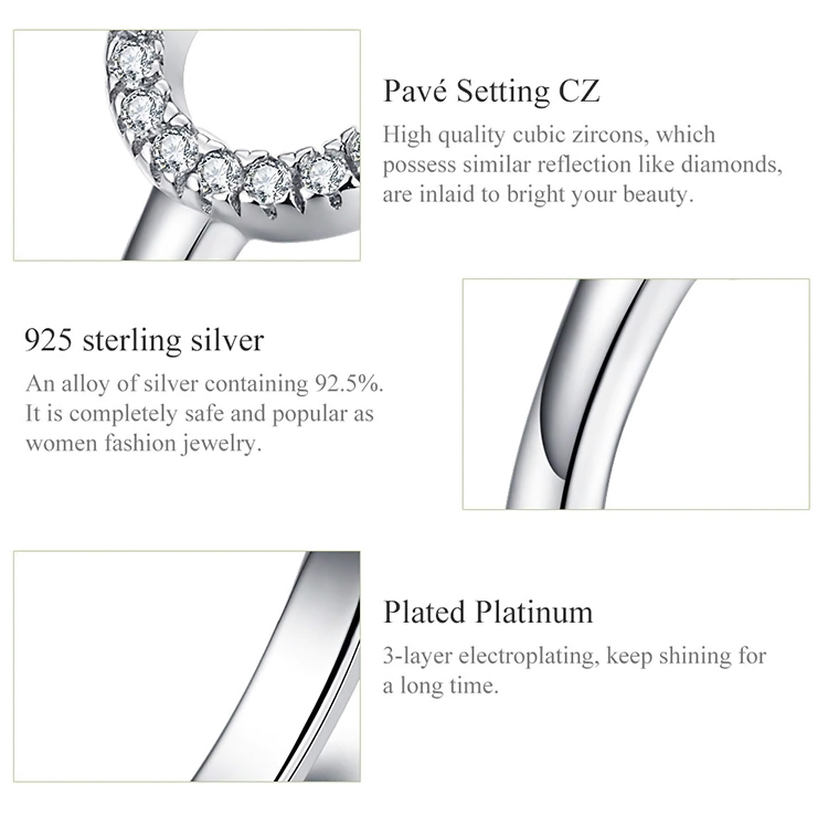 BAMOER δαχτυλίδι SCR545 με κυβική ζιρκόνια, ανοιγόμενο, ασήμι 925, ασημί
