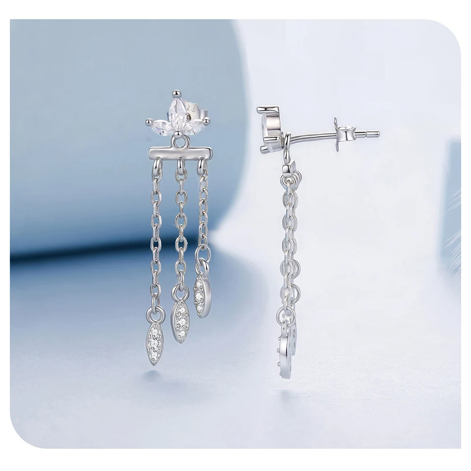 Μοντέρνα σκουλαρίκια καρφωτά Bamoer, κατασκευασμένα από ασήμι 925 και διακοσμημένα με αστραφτερή κυβική ζιρκόνια.