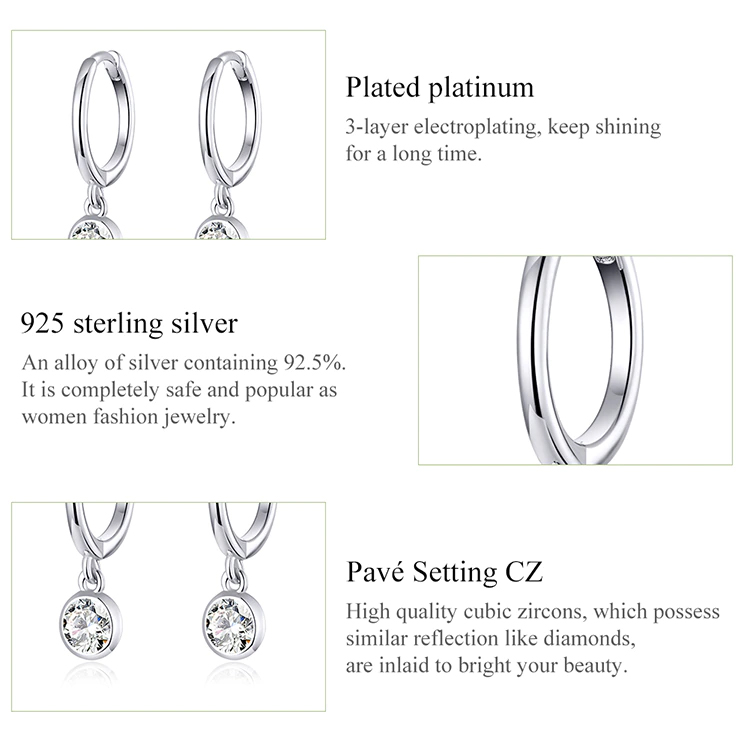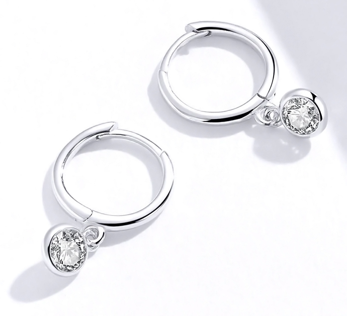 Σκουλαρίκια κρίκος Bamoer κατασκευασμένα από ασήμι 925, επιπλατινωμένα, διακοσμημένα με αστραφτερή κυβική ζιρκόνια, ημιδιαφανούς λευκού χρώματος.
