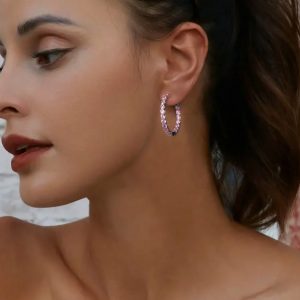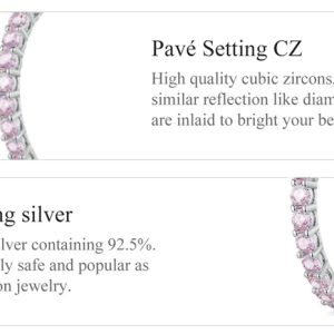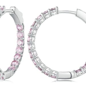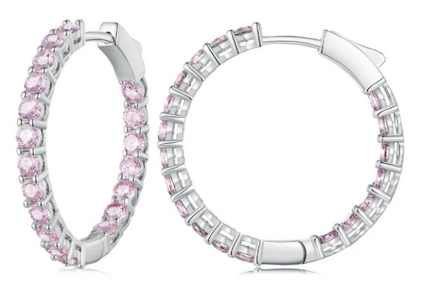 Σκουλαρίκια κρίκος της Bamoer κατασκευασμένα από ασήμι 925, διακοσμημένα με αστραφτερή κυβική ζιρκόνια, ροζ χρώματος.