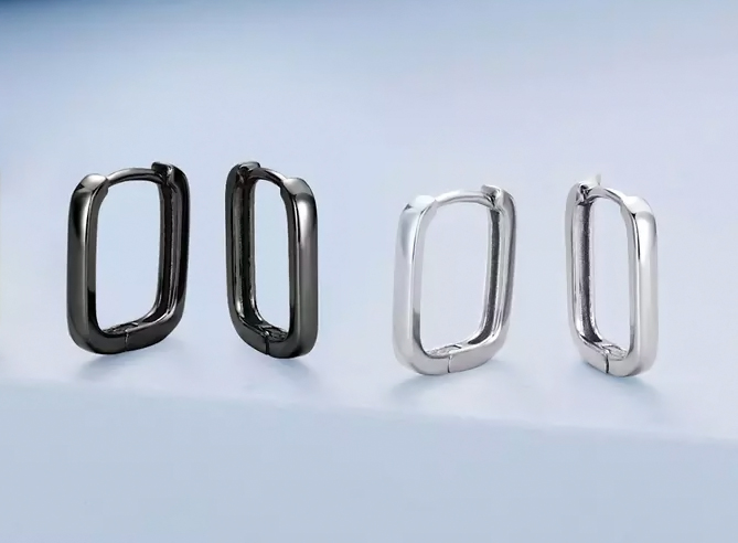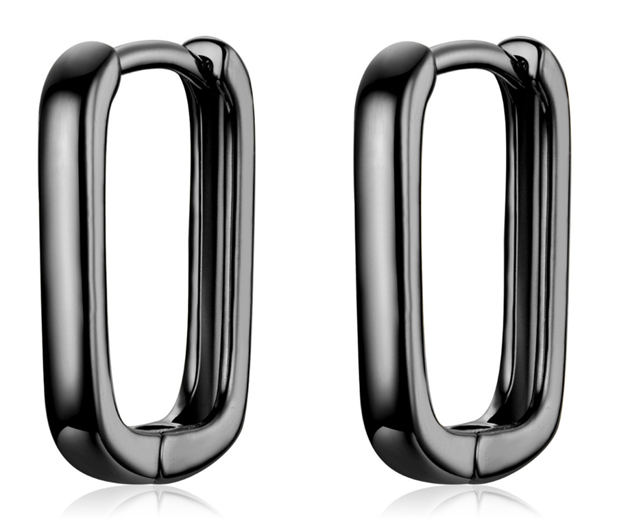 BAMOER σκουλαρίκια οβάλ κρίκοι BSE478-D, ασήμι 925, μαύρα