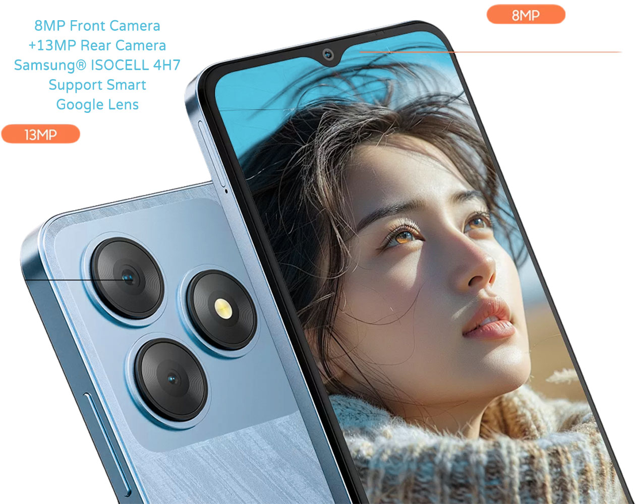 - Πίσω Κάμερα 13MP με τον αισθητήρα Samsung® ISOCELL 4H7, για φωτογραφίες που εντυπωσιάζουν με κάθε λήψη. Αποτυπώστε τοπία, δυναμικές σκηνές και κοντινά πλάνα με πλούσια χρώματα και λεπτομέρεια.