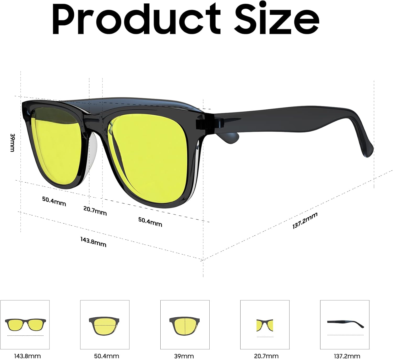 • Πολλαπλές Χρήσεις: Ιδανικά ως γυαλιά μπλε φωτός, γυαλιά παιχνιδιών, φακοί ύπνου, γυαλιά υπολογιστή και γυαλιά οδήγησης τη νύχτα.