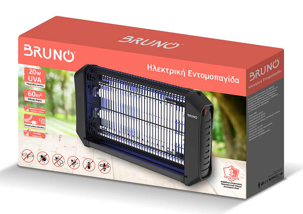 BRUNO ηλεκτρική εντομοπαγίδα BRN-0186 με UV λυχνία, 20W, μαύρη