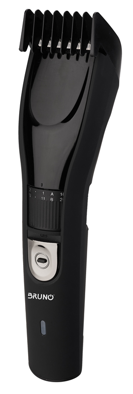 Κουρευτική μηχανή Bruno, με κεφαλή ρυθμιζόμενου μήκους, για ξύρισμα, κούρεμα και περιποίηση. Εξοπλίζεται με ανθεκτικές λεπίδες από ανοξείδωτο ατσάλι και λειτουργεί με μπαταρία ή καλώδιο ρεύματος. Η ενσωματωμένη μπαταρία προσφέρει στη μηχανή αυτονομία έως 60 λεπτά.