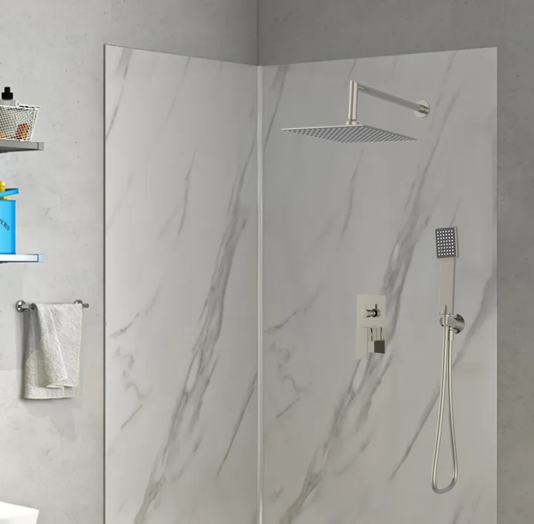 BRUNO σετ κεφαλή ντους με τηλέφωνο BRN-0264, αναμεικτική, εντοιχισμού, ασημί