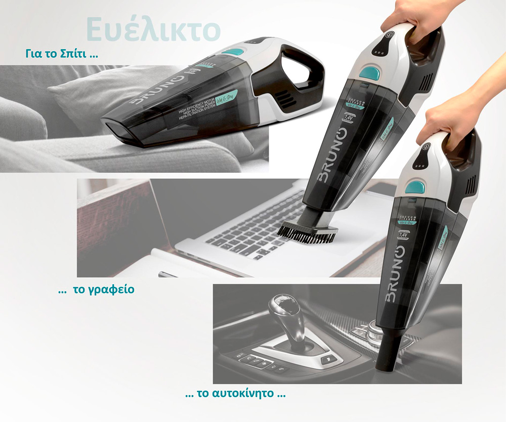 Το επαναφορτιζόμενο σκουπάκι της BRUNO είναι ιδανικό για γρήγορο και εύκολο τοπικό καθάρισμα στερεών και υγρών υπολειμμάτων.