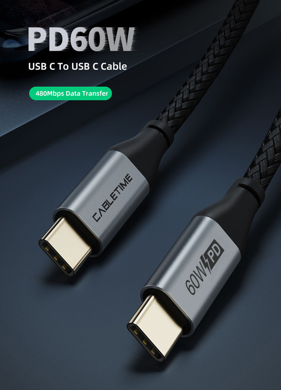 CABLETIME καλώδιο USB-C σε USB-C CT-CMCM, 60W, 480Mbps, 2m, μαύρο