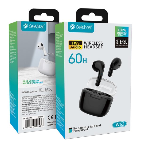 Τα true wireless earphones W52 της Celebrat προσφέρουν κορυφαία ποιότητα ήχου και άριστη εφαρμογή στο αυτί. Είναι συμβατά με tablets, smartphones και άλλες συσκευές που διαθέτουν Bluetooth.
