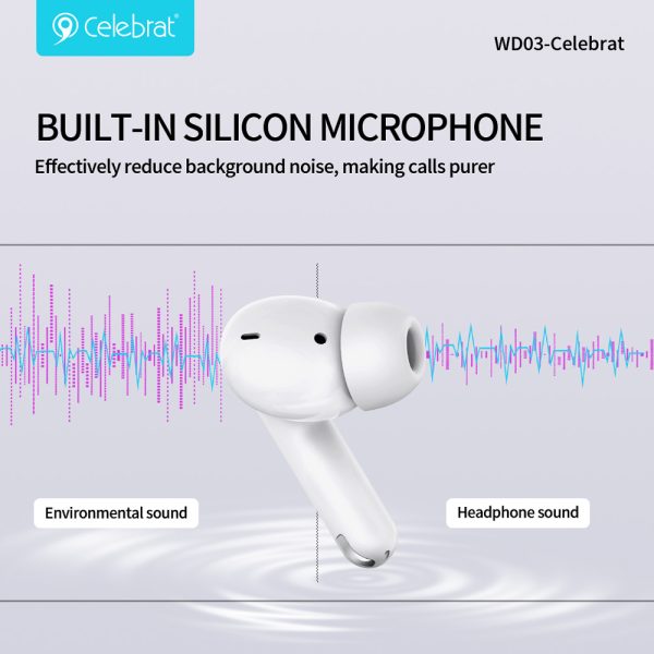 Τα true wireless earphones WD03 της Celebrat προσφέρουν κορυφαία ποιότητα ήχου και άριστη εφαρμογή στο αυτί. Είναι συμβατά με tablets, smartphones και άλλες συσκευές που διαθέτουν Bluetooth.
