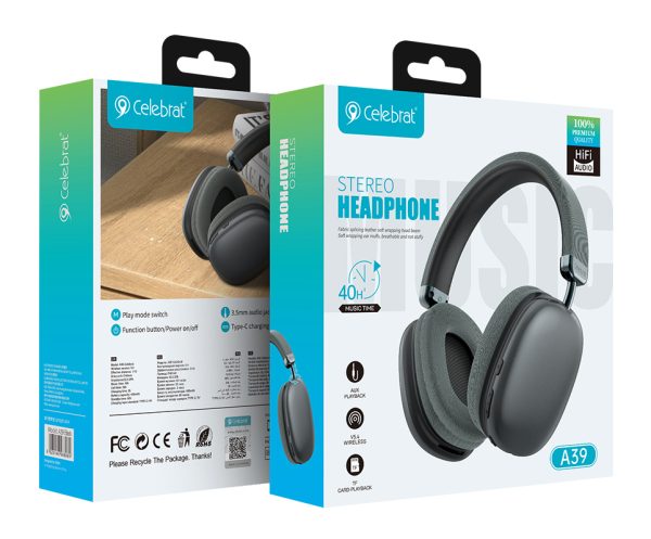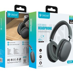 CELEBRAT headphones A39, ασύρματα & ενσύρματα, micro SD, 40mm, 400mAh, μαύρα