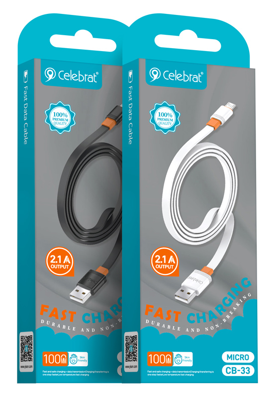 CELEBRAT καλώδιο micro USB σε USB CB-33M, flat, 10.5W, 1m, λευκό