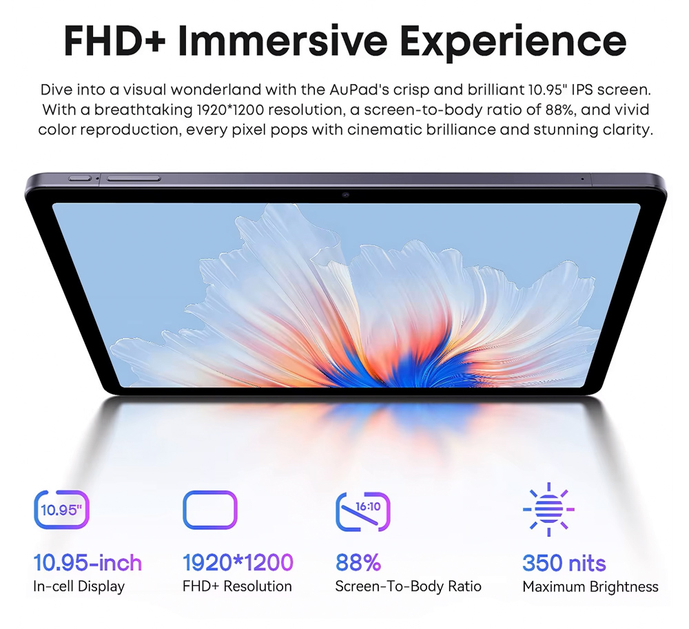Εξοπλισμένο με επεξεργαστή 8 πυρήνων και λειτουργικό Android 14, το AuPad προσφέρει υψηλή απόδοση για απρόσκοπτη περιήγηση στο διαδίκτυο, παιχνίδια, πολυμέσα και πολλά άλλα.