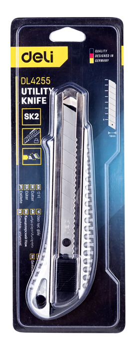 DELI μεταλλικό κοπίδι με ασφάλεια DL4255, 18mm, ασημί