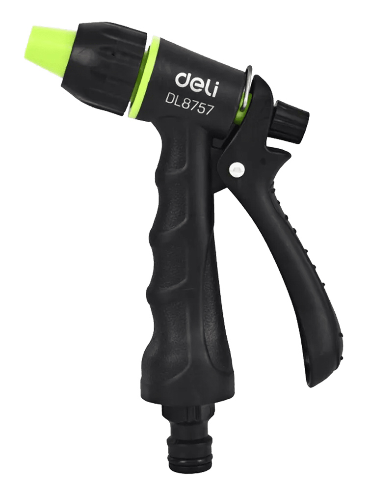 Πιστόλι εκτόξευσης νερού της Deli με 3 λειτουργίες ψεκασμού. Διαθέτει αντιολισθητική λαβή που εφαρμόζει καλά στο χέρι για πιο ξεκούραστο πότισμα.