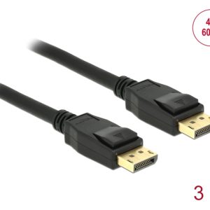 DELOCK καλώδιο DisplayPort 1.2 83807, 4K/60Hz, 21.6 Gbps, 3m, μαύρο
