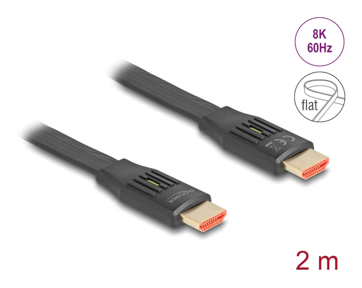 DELOCK καλώδιο HDMI 81002, flat, 8K/60Hz, 48 Gbps, eARC, HDR, 2m, μαύρο