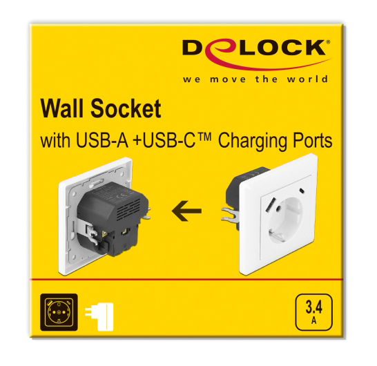 DELOCK πρίζα τοίχου 11489 με θύρες φόρτισης USB & USB Type-C 3.4A, λευκή