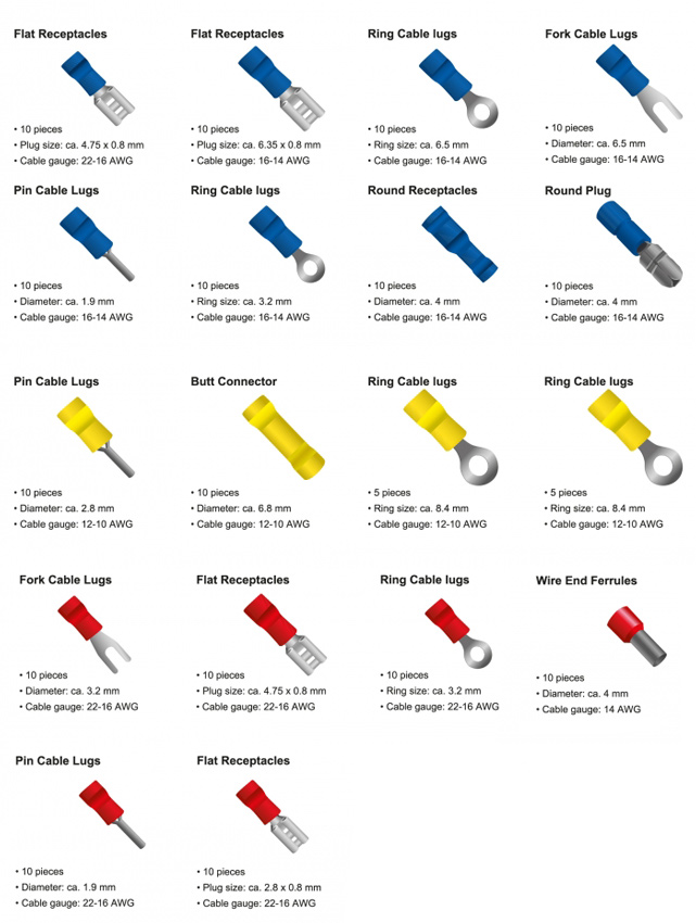 10x ακροδέκτες ακίδας (Μέγεθος pin: 2.8mm, 12-10 AWG)