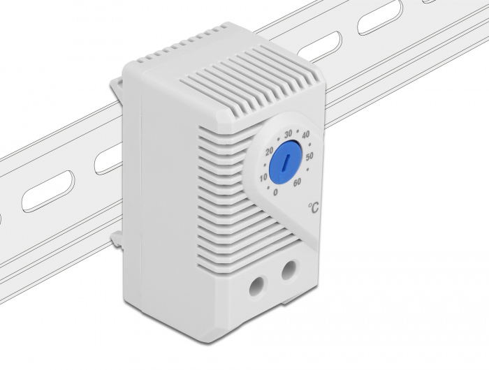 Αυτός ο θερμοστάτης της Delock μπορεί να χρησιμοποιηθεί για τον έλεγχο φίλτρων ανεμιστήρων, εναλλακτών θερμότητας ή για εναλλαγή σημάτων συσκευών όταν υπερβαίνεται η θερμοκρασία. Όταν η θερμοκρασία αυξάνεται η επαφή ανοίγει. Χάρη στα ενσωματωμένα κλιπ στο πίσω μέρος του, μπορεί να τοποθετηθεί σε μια ράγα DIN 35 mm.