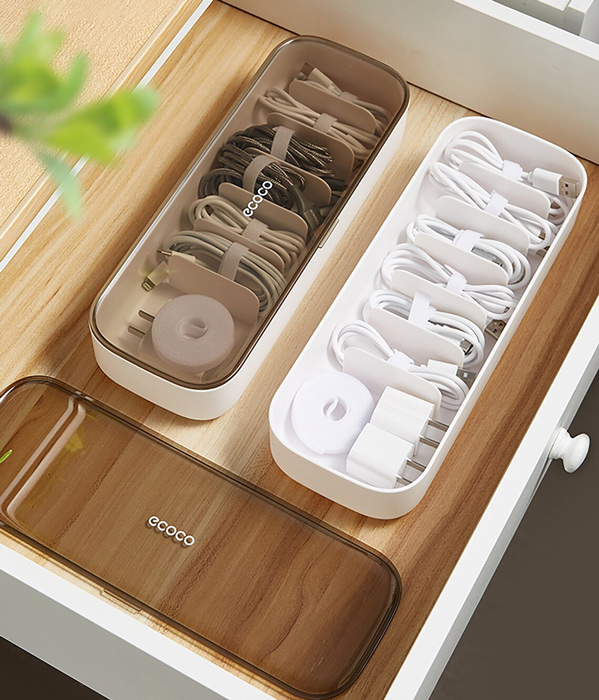Πλαστικό κουτί της Ecoco, ιδανικό για την οργάνωση καλωδίων και φορτιστών. Διαθέτει 7 θέσεις (1x φορτιστών & 6x καλωδίων), ενώ, το καπάκι του είναι διάφανο, χάρη στο οποίο, το περιεχόμενο του παραμένει πάντα ορατό.
