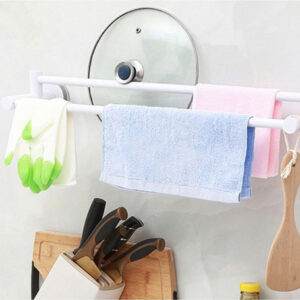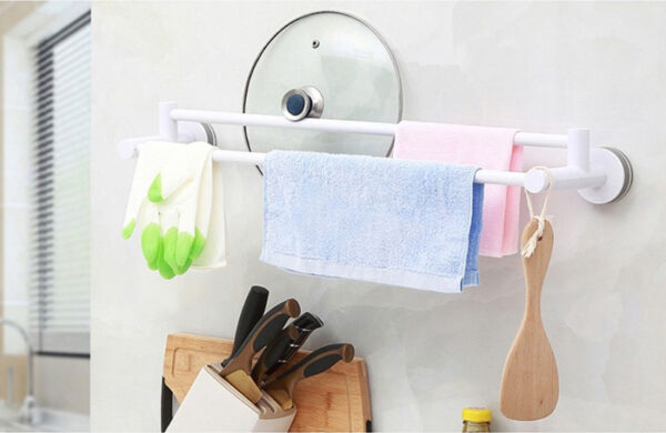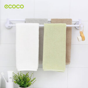 Κρεμάστρα μπάνιου-κουζίνας για πετσέτες της Ecoco με 2 μπάρες κρεμάσματος. Η τοποθέτηση της κρεμάστρας στον τοίχο γίνεται εύκολα με αυτοκόλλητα κλιπ και μπορεί να συγκρατήσει έως και 5kg βάρους.