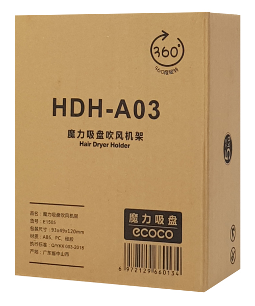 Ειδική βάση της Ecoco για την στήριξη του σεσουάρ των μαλλιών. Τοποθετείται εύκολα στον τοίχο με αυτοκόλλητο το οποία αποσπάται από την βάση και είναι ιδιαίτερα βολικό στη χρήση.
