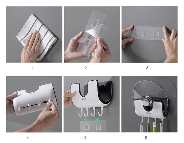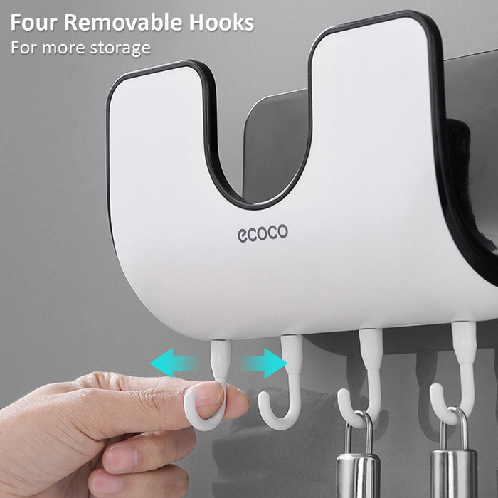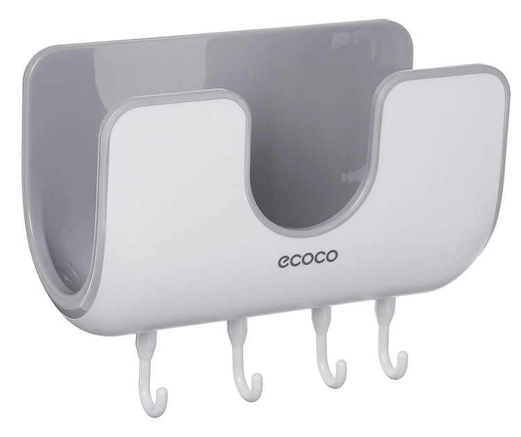 Βάση τοίχου για κουζίνα της Ecoco με 4 γάντζους και κομψό σχεδιασμό. Προσφέρει χώρους αποθήκευσης για τιγανια ή καπακια κατσαρολας αλλα και διαφορων αλλων σκευων μαγειρικης που μπορουν να κρεμαστουν απο τους γάντζους. Τοποθετείται εύκολα σε οποιαδήποτε επίπεδη επιφάνεια με αυτοκόλλητα κλιπ τα οποία αποσπώνται από την βάση, διευκολύνοντας τον καθαρισμό της.
