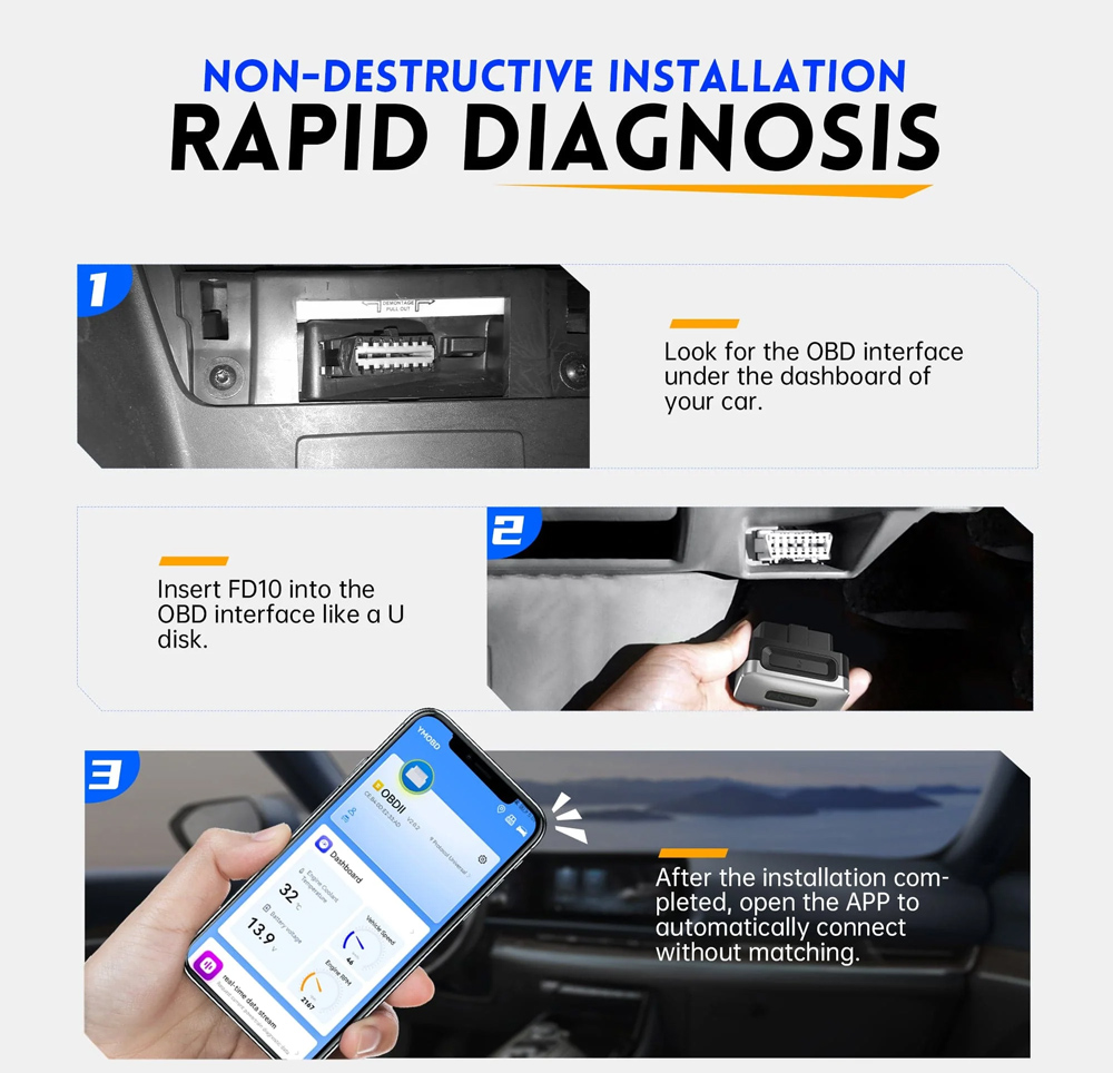 FNIRSI διαγνωστικό αυτοκινήτου OBD II FD10, Bluetooth