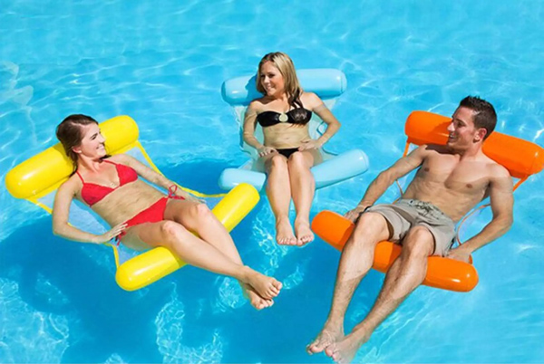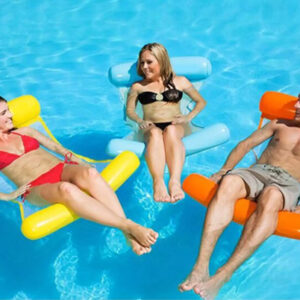 Καρέκλα με δίχτυ και φουσκωτά άκρα που επιπλέει στο νερό, ιδανική για θάλασσα και πισινά.