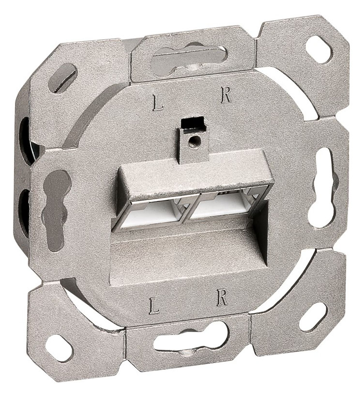 Επιτοίχια πρίζα με 2 θύρες δικτύου για σύνδεση καλωδίων με βύσμα RJ45. Είναι θωρακισμένη, ικανή για ταχύτητες 10 GBit Ethernet και ιδανική για χρήση PoE+ IEEE 802.3at.