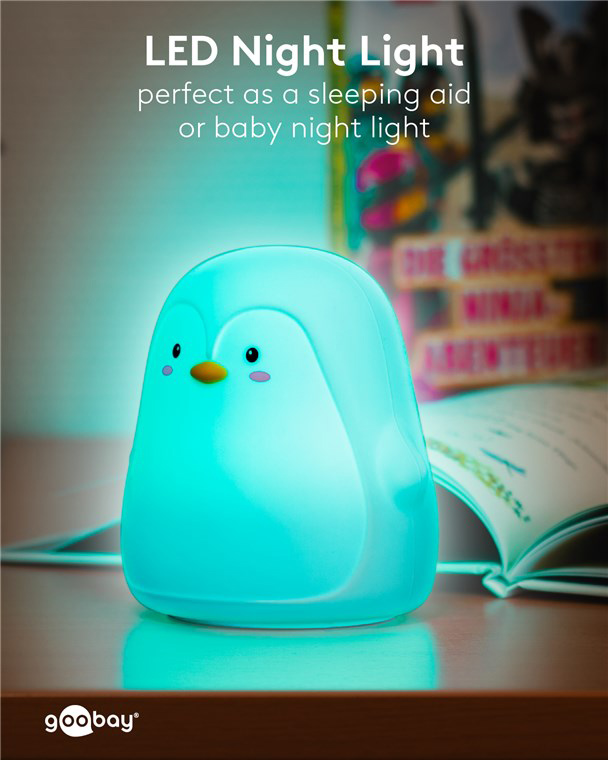 Χαρίστε στο παιδικό δωμάτιο μια ζεστή και χαλαρωτική ατμόσφαιρα με το LED φωτιστικό νυκτός της Goobay σε σχήμα χαριτωμένου πιγκουίνου.