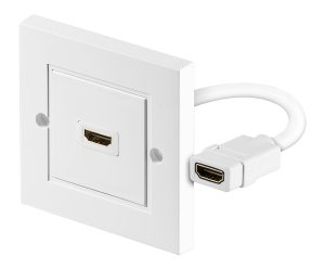 Πρίζα τοίχου HDMI από την Goobay για γρήγορη και ευέλικτη σύνδεση καλωδίων HDMI. Η εγκατάσταση της γίνεται εύκολα σε χωνευτά κυτία τοίχου (διαστάσεις 86×86 mm εξωτερικά και 50×50 mm εσωτερικά).