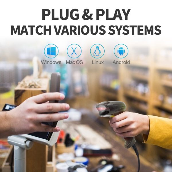 -Scanning depth: QR 9.17 mil (7mil): 6cm – 10cm, Data Matrix 9.17mil (7mil): 7cm – 10cm, code93 5.83mil (14mil): 7cm – 10cm, Refund code 28mil: 10cm – 15cm, WeChat Pay QR Code: 9cm – 45cm