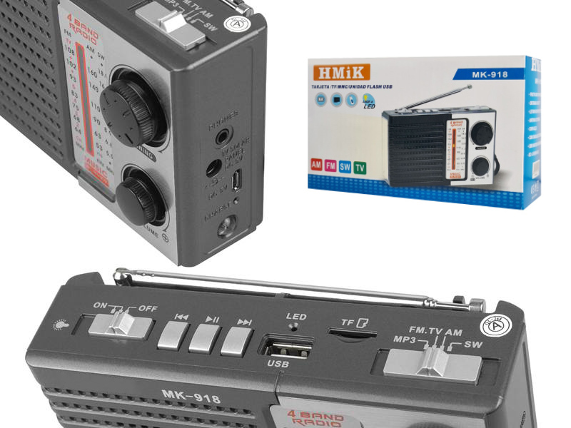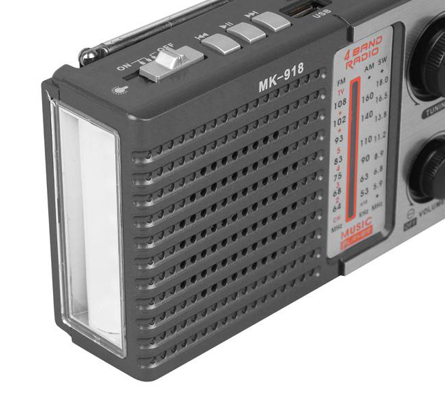 HMIK φορητό ραδιόφωνο & ηχείο MK-918 με φακό, USB/TF/AUX, γκρι