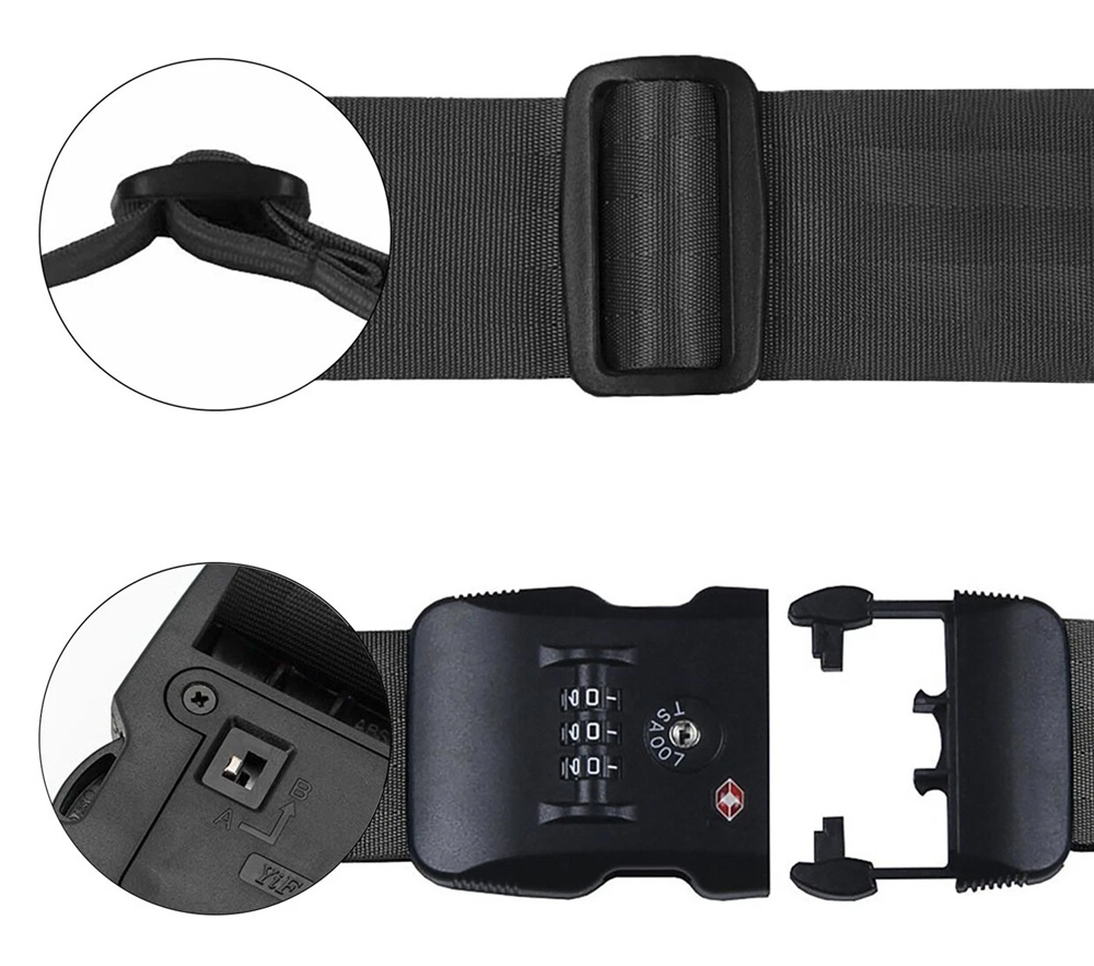 HOME USE ιμάντας βαλίτσας HUH-0245 με λουκέτο συνδυασμού TSA, ρυθμιζόμενος, 2m, μαύρος