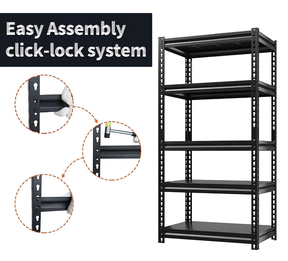 HOME USE μεταλλική ραφιέρα HUH-0198 με 5 ράφια, 90x40x183cm, μαύρη