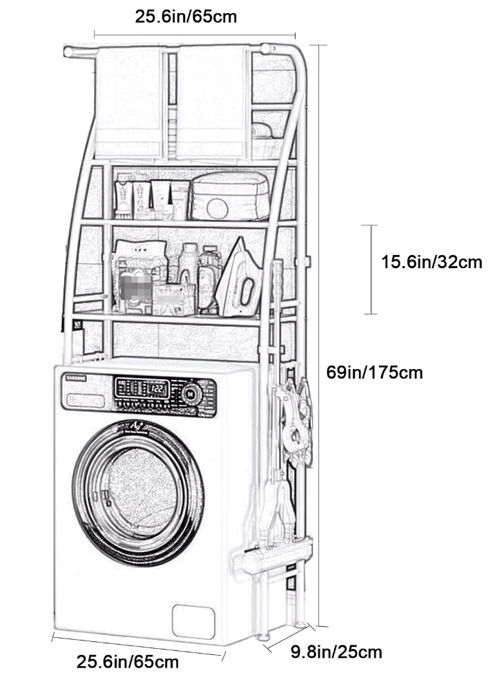 Μεταλλική ραφιέρα μπάνιου, ιδανική για την οργάνωση και την τακτοποίηση του μπάνιου. Μπορεί να τοποθετηθεί πάνω από το πλυντήριο ρούχων ώστε να δημιουργήσετε περισσότερο αποθηκευτικό χώρο στο μπάνιο σας, κάνοντας την ιδανική λύση για μπάνια με περιορισμένο χώρο.