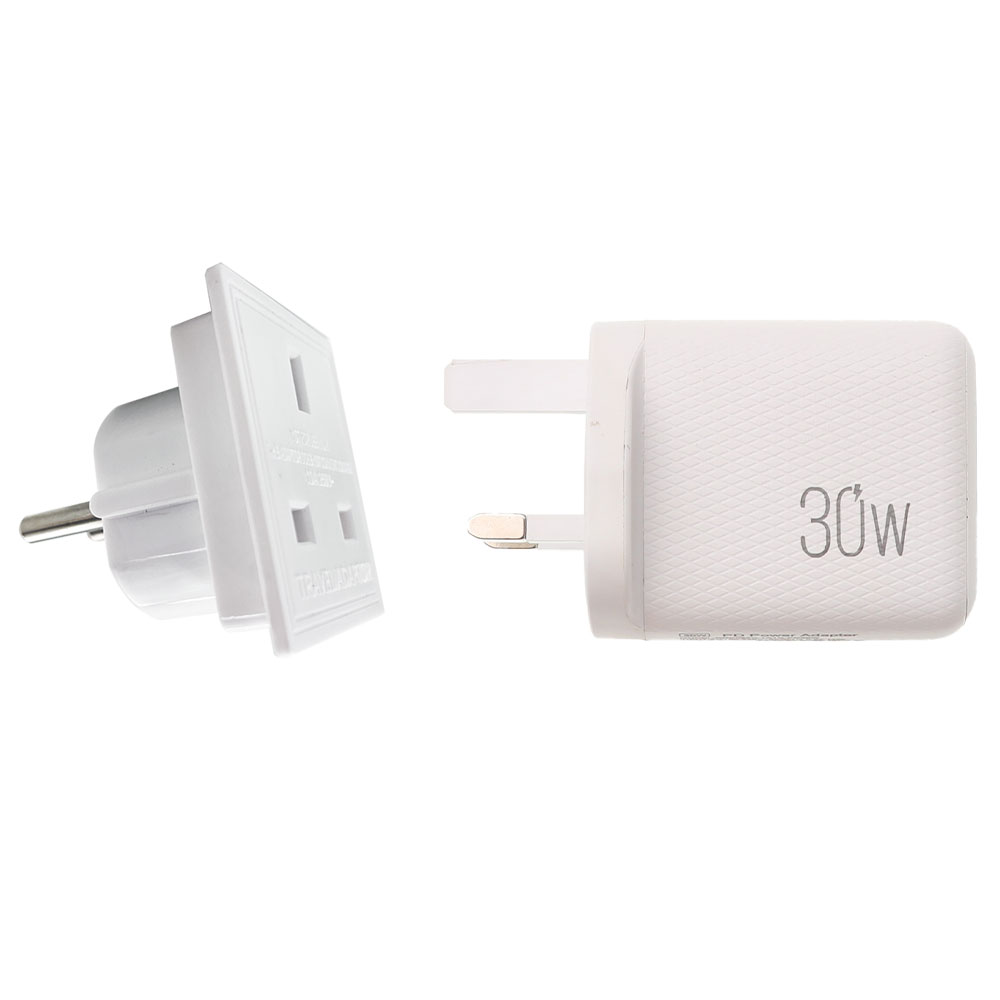 2-IN-1 Ταξιδιωτικός Φορτιστής USB QC3.0 & Type-C 30W με Αντάπτορα EU/UK