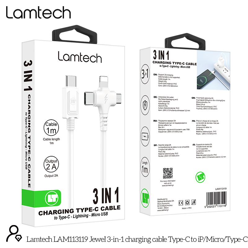 Μείνετε φορτισμένοι εν κινήσει με το καλώδιο φόρτισης LAMTECH 3 σε 1 και απολαύστε μια αξιόπιστη και υψηλής ποιότητας εμπειρία φόρτισης!