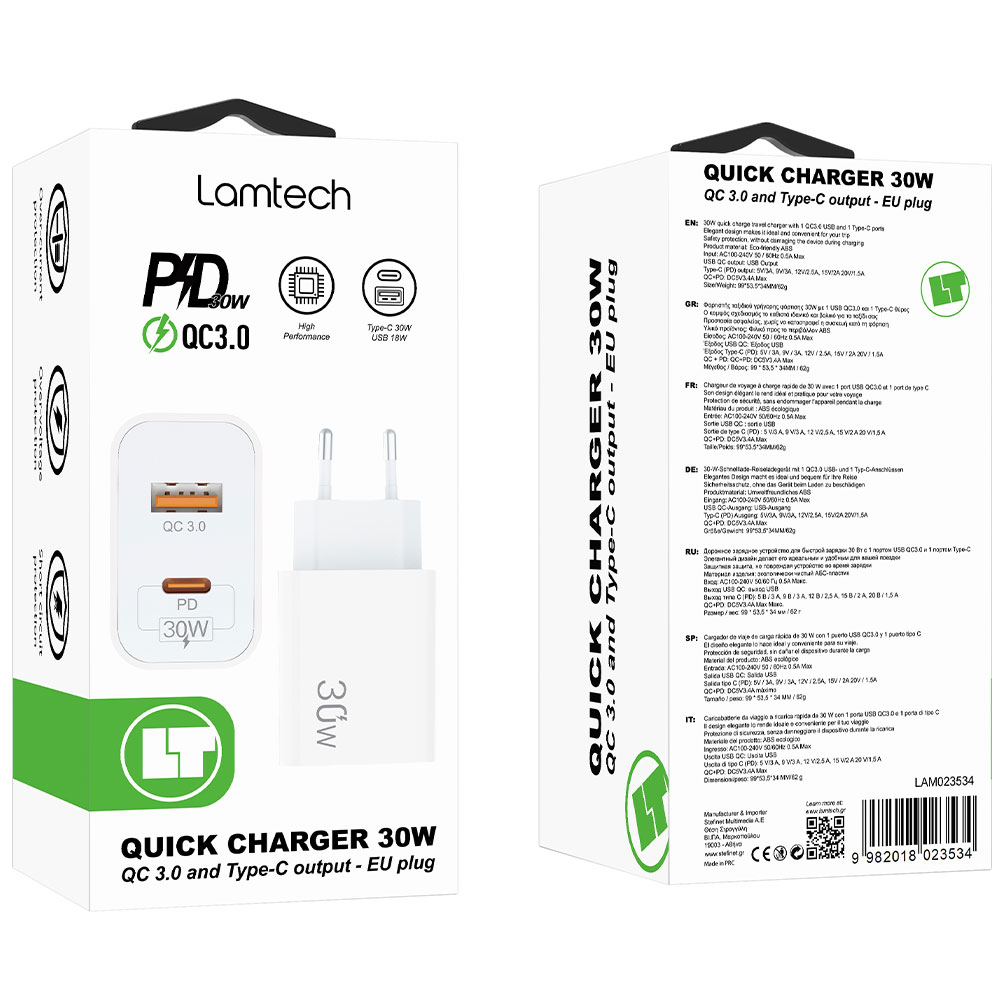 Φορτιστής LAMTECH USB QC3.0/Type-C 30W
