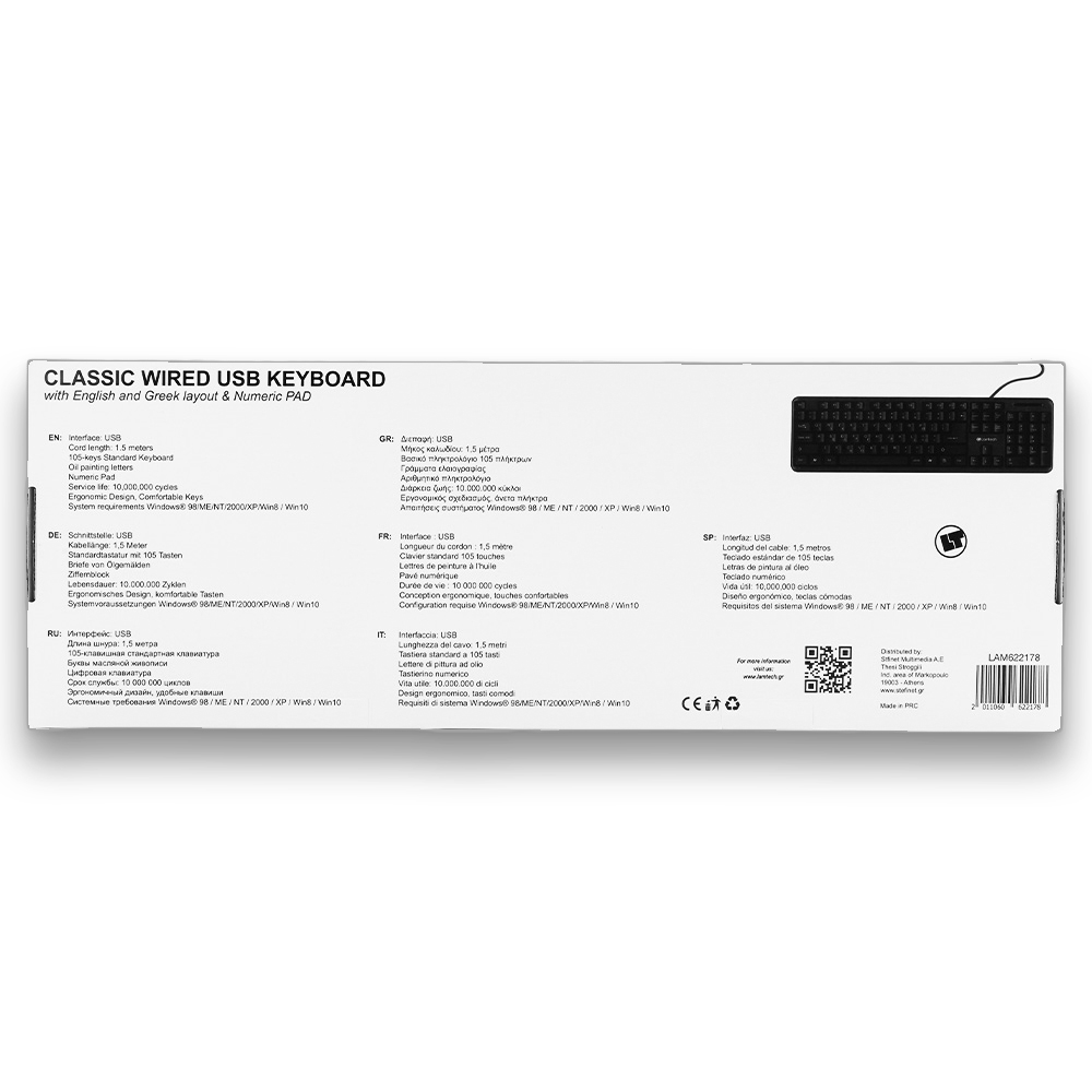 Απολαύστε την επίδειξη της αξιοπιστίας και της λειτουργικότητας με το LAMTECH Classic USB Keyboard.
