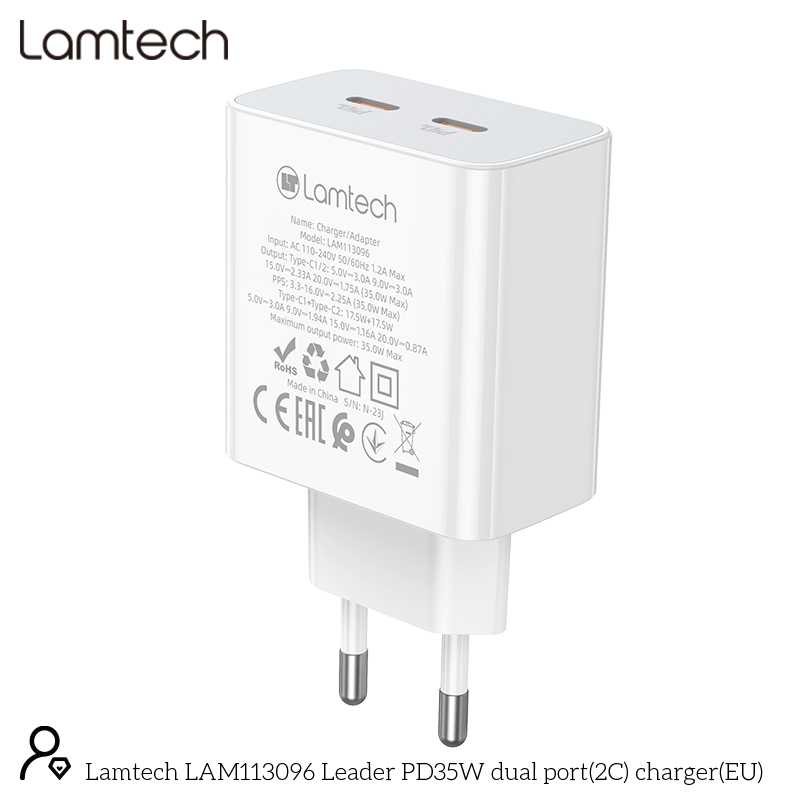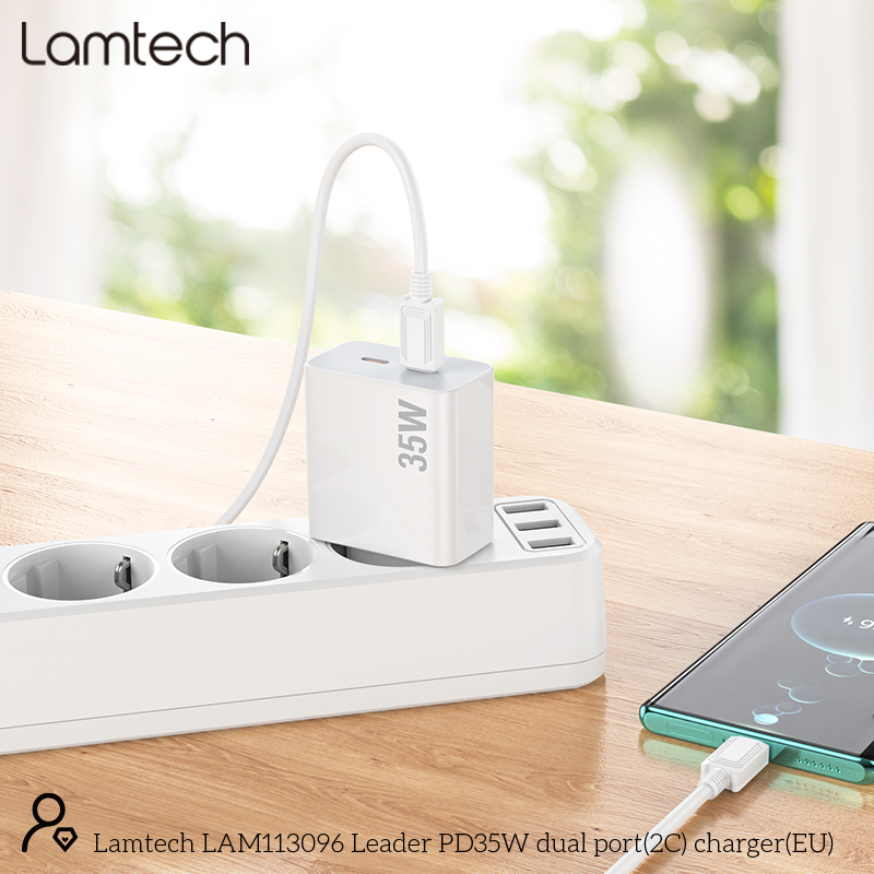 LAMTECH DUAL TYPE-C FAST CHARGER PD35W WHITE LAMTECH DUAL TYPE-C FAST CHARG...
