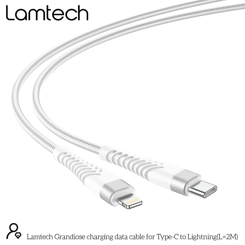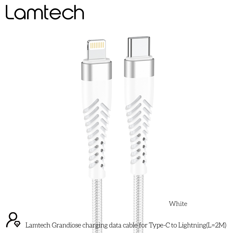 • LAMTECH HQ UNBREAKABLE CABLE TYPE-C TO LIGHTNING WHITE 2M