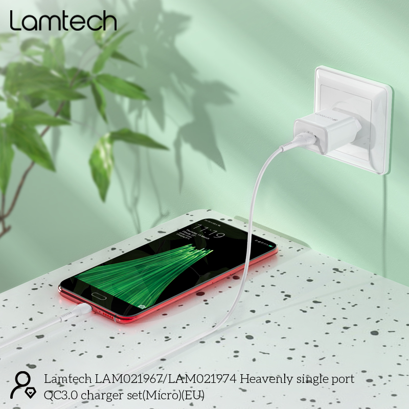 Φορτιστής USB QC3.0 με καλώδιο micro USB 1μ