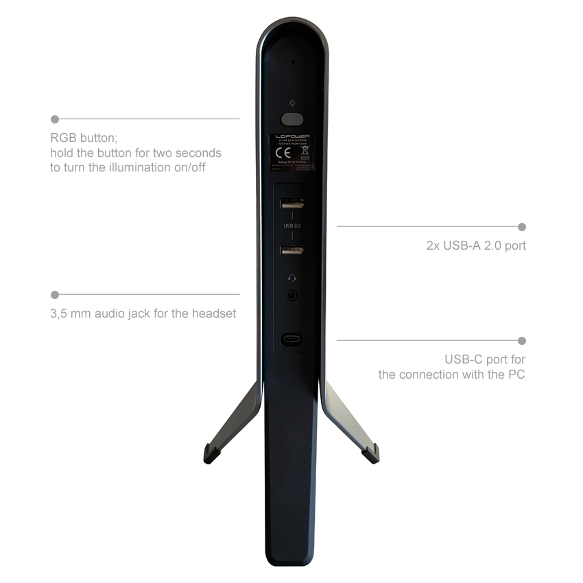 Γνωρίστε τον Guardian, η απόλυτη λύση για ένα οργανωμένο και αποτελεσματικό χώρο εργασίας! Πείτε αντίο στην ακατατάχτητη επιφάνεια εργασίας και καλωσήρθατε στην ευκολία με αυτήν την καινοτόμο συσκευή που συνδυάζει έναν βάση ακουστικών και μια USB hub με άψογο τρόπο. Με το USB-A hub που διαθέτει 2 θύρες USB-A 2.0 και μια θύρα USB-C για άμεση σύνδεση με τον υπολογιστή σας, ο Guardian εξασφαλίζει ότι έχετε όλες τις απαραίτητες συνδέσεις στα δάχτυλά σας. Αλλά αυτό δεν είναι το τέλος – διαθέτει επίσης μια 3,5mm ηχοληψία για τα ακουστικά σας, εξαλείφοντας τον κόπο της αναζήτησης ξεχωριστών θυρών. Πια δεν υπάρχουν μπερδεμένα καλώδια ή χαμένα ακουστικά! Η ενσωματωμένη βάση ακουστικών του Guardian φιλοξενεί τόσο ακουστικά on-ear όσο και over-ear, κρατώντας τα ασφαλή και εύκολα προσβάσιμα όταν τα χρειάζεστε. Επιπλέον, με το ρυθμιζόμενο φωτισμό RGB που προσφέρει πέντε ζωντανά χρώματα και λειτουργίες, μπορείτε να εξατομικεύσετε τον χώρο εργασίας σας για να ταιριάζει με τη διάθεσή σας και το στιλ σας.