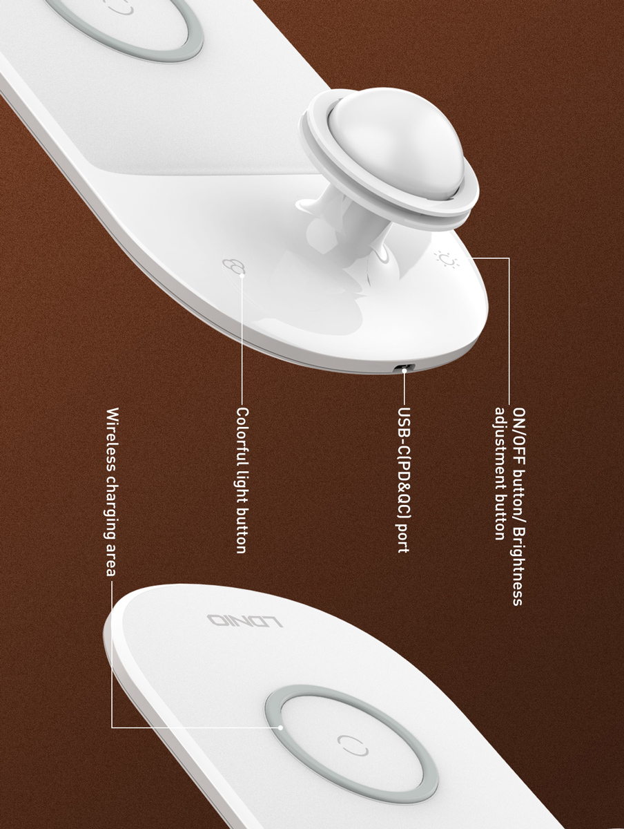 LDNIO ασύρματος φορτιστής Y3 με φωτιστικό, 15W, λευκός